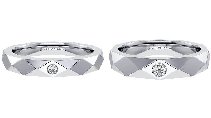 另一款對戒則運用菱形切割面設計,彷彿女王的魔法在不同的光線照射下熠熠生輝,寓意著人生裡各種形式的愛是如此堅定純粹。