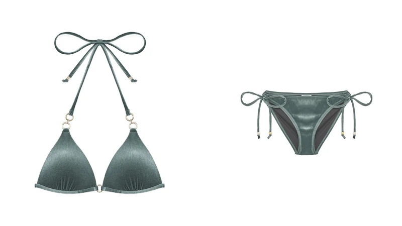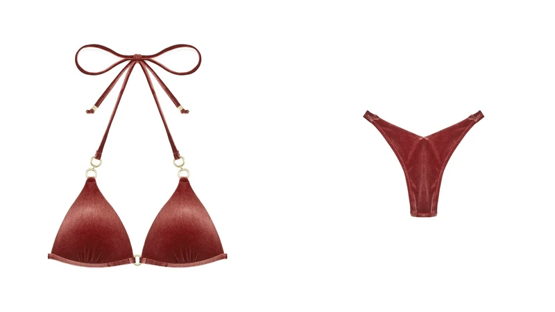 全新登場的波光多環美型比基尼,選用優雅奢華的楓葉紅,以及冷豔的青石藍的絨布面料打造,泳褲方面分別推出丁字美臀款及綁帶提臀款,充滿節慶感的配色加上大膽性感的設計,不論是送人或買來自己穿,都非常合適。即日起在官網上購入1套泳裝或2件上身,還能獲得品牌「I Love Me」Monogram老花聖誕包裝禮盒。