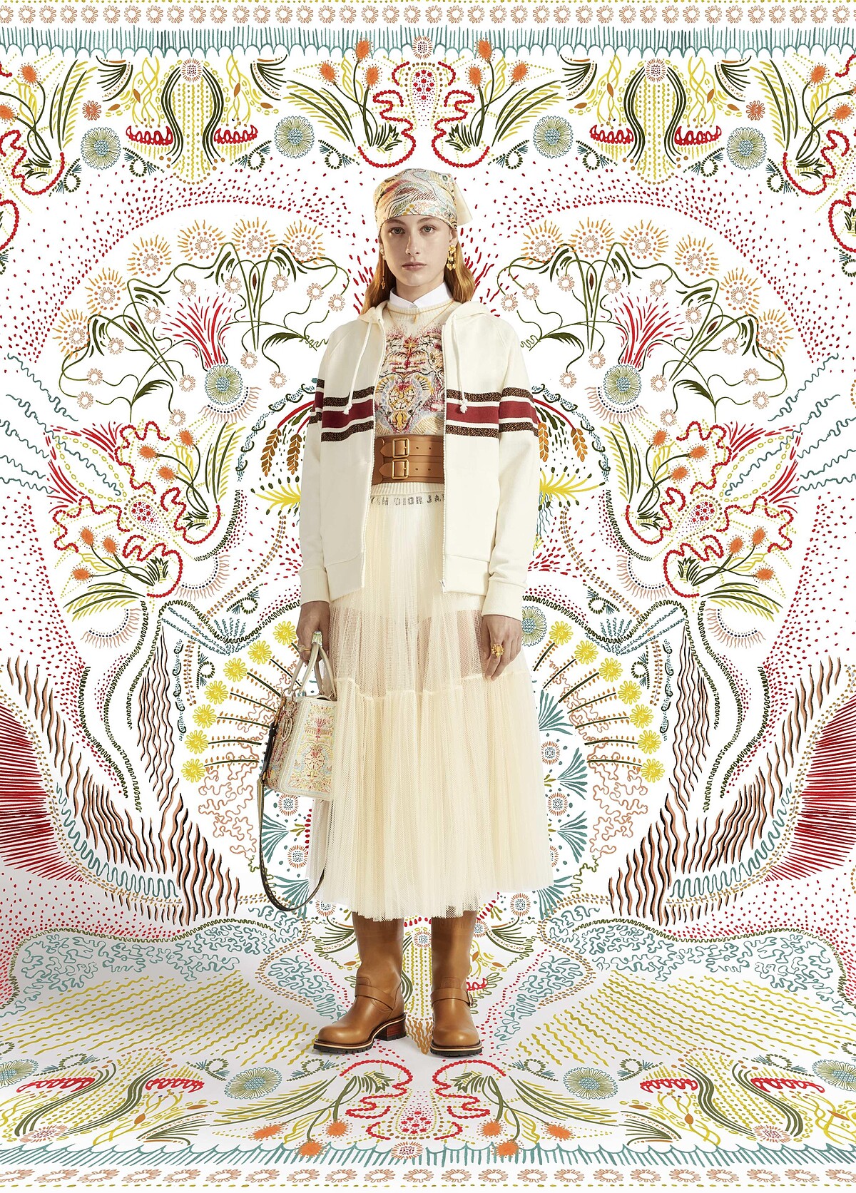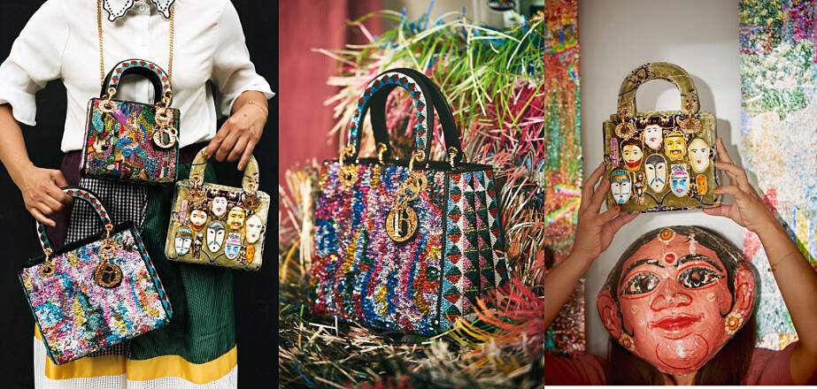 Olga Titus 這位瑞士藝術家受到來自印度與馬來西亞的祖父母影響,也透過旅行激發創作靈感,他擅長以不同文明間的文化元素交織一爐,並以作品探索演繹由 Homi K. Bhabha 的「第三空間」理論,作品在實體與虛擬間遊走。本次他將 Lady Dior 包款上的創作視為「小宇宙」並以色彩斑斕的珠飾及水晶刺繡作為設計元素,將遙不可及的浩瀚星空幻化作為可見之物;另一款則以絲絨地氈效果羊毛刺繡作為包身裝飾,並透過迪奧工匠的精湛工藝鑲嵌手繪琺瑯金屬面具,為 Lady Dior 注入充滿藝術視角的非凡想像力。