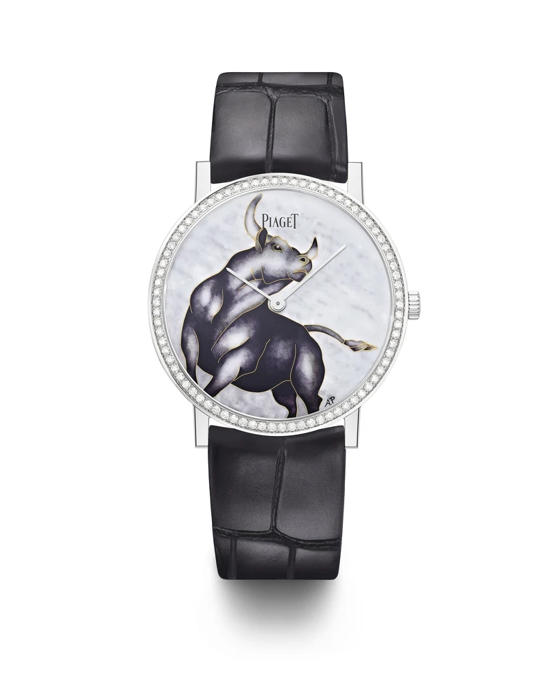 從2012年以來Piaget伯爵每逢農曆春節便為Altiplano系列手錶設計一款限定版琺瑯腕錶,今年同樣以傳統十二生肖中為題,推出喜氣又有質感的牛年新品超薄手動上鍊腕錶,由琺瑯工藝大師Anita Porchet捉刀描繪,並以大明火掐絲琺瑯技法勾勒出精神飽滿的春牛,全球限量推出38只。