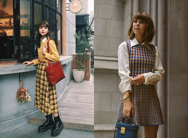 60 年代由 Mary Quant 創造出的「小女孩風格」風靡一時,這也是六零年代穿搭關鍵字,穿出「女孩感」便是製造六零風格的重要因素,連身裙與內搭衣是非常經典的穿搭方法,而現在也可以選擇格子裙來製造書卷女孩的樣子,選擇亮眼的顏色就可以複製 60 年代的活力朝氣感。