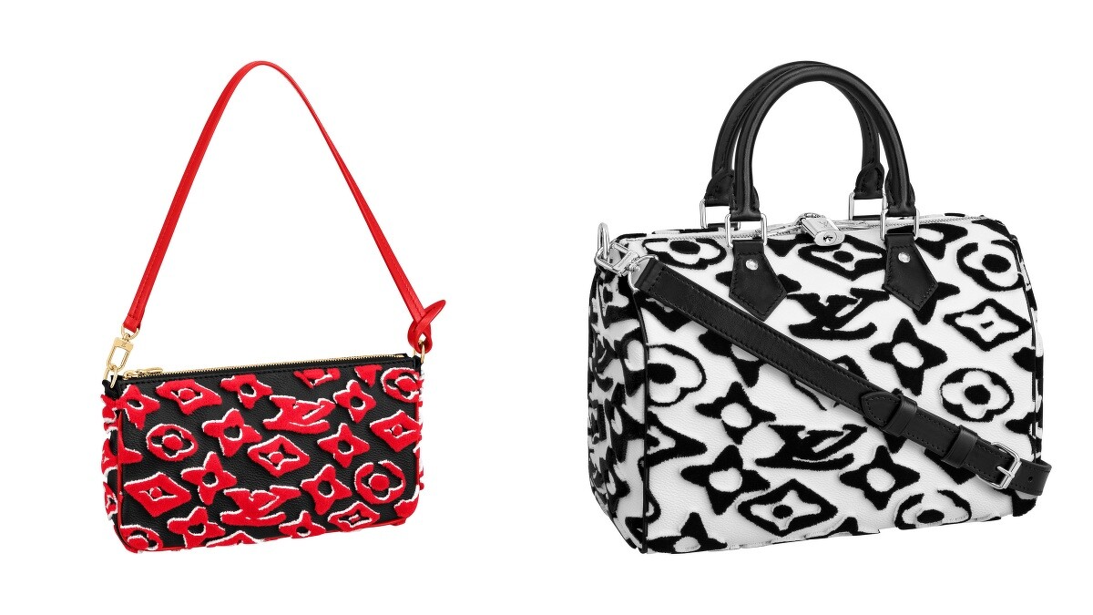 擅長與藝術家合作的路易威登,早在2019年就曾找上瑞士藝術家Urs Fischer發表首個聯名系列,然而2021年初雙方宣佈再續前緣,透過Fischer擅長的「記憶素描」手法,重新分配老花圖案與LV品牌縮寫,讓經典Monogram設計於眼中漂浮移動,更以紅、黑、白三色貫穿全系列設計。