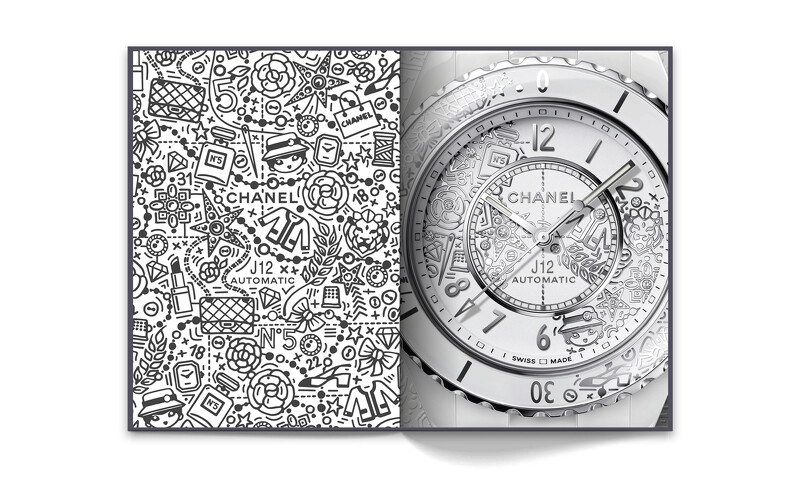 左頁:J12•20腕錶錶面圖騰。© CHANEL / 2020。