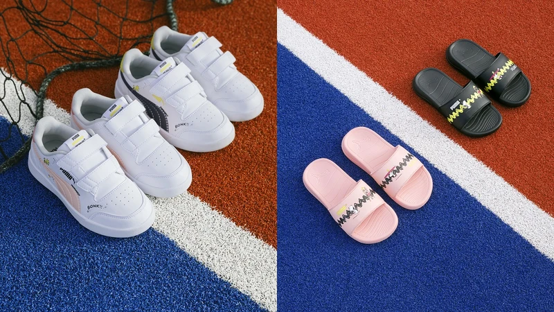 Puma x Peanuts聯名系列包含Future Rider by Peanuts和Ralph Sampson by Peanuts兩雙大人球鞋、Mirage Mox、Shuffler及R78共3雙童鞋,還有舒適好穿的居家拖鞋系列。除了球鞋系列外,還有圓領衫、連帽 T 恤及束口長褲...等百搭運動服飾,當然也包含童裝尺寸。