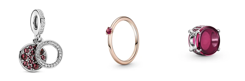 閃耀恆星紅色寶石925銀吊飾NT2,480、Pandora Rose紅色寶石線戒 NT1,580、酒紅寶石串飾 NT2,880