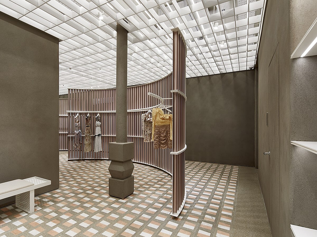 self-portrait首間台灣旗艦店承繼了品牌以往的裝潢風格,簡約大方中充滿細節與藝術性,以圓弧和曲線打造出簡潔氛圍,並搭配從歐洲進口的奧羅拉粉色大理石磚與白色大理石拼接,擺放客製化的大圓鏡,讓整體空間呈現協調結構美學,在選購的同時還能享有舒適與美學兼具的空間感。