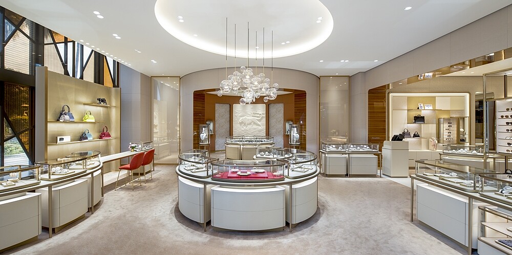 專賣店外牆有6枚卡地亞獨特的王室徽章裝飾,呼應品牌為皇室御用的歷史:自1904年起,卡地亞獲頒第一紙皇家珠寶供應商委任狀,爾後如摩納哥、葡萄牙、西班牙、賽爾維亞、俄羅斯等各國皇室紛紛頒贈委任狀。「皇帝的珠寶商,珠寶商的皇帝」 美稱其來有自。
