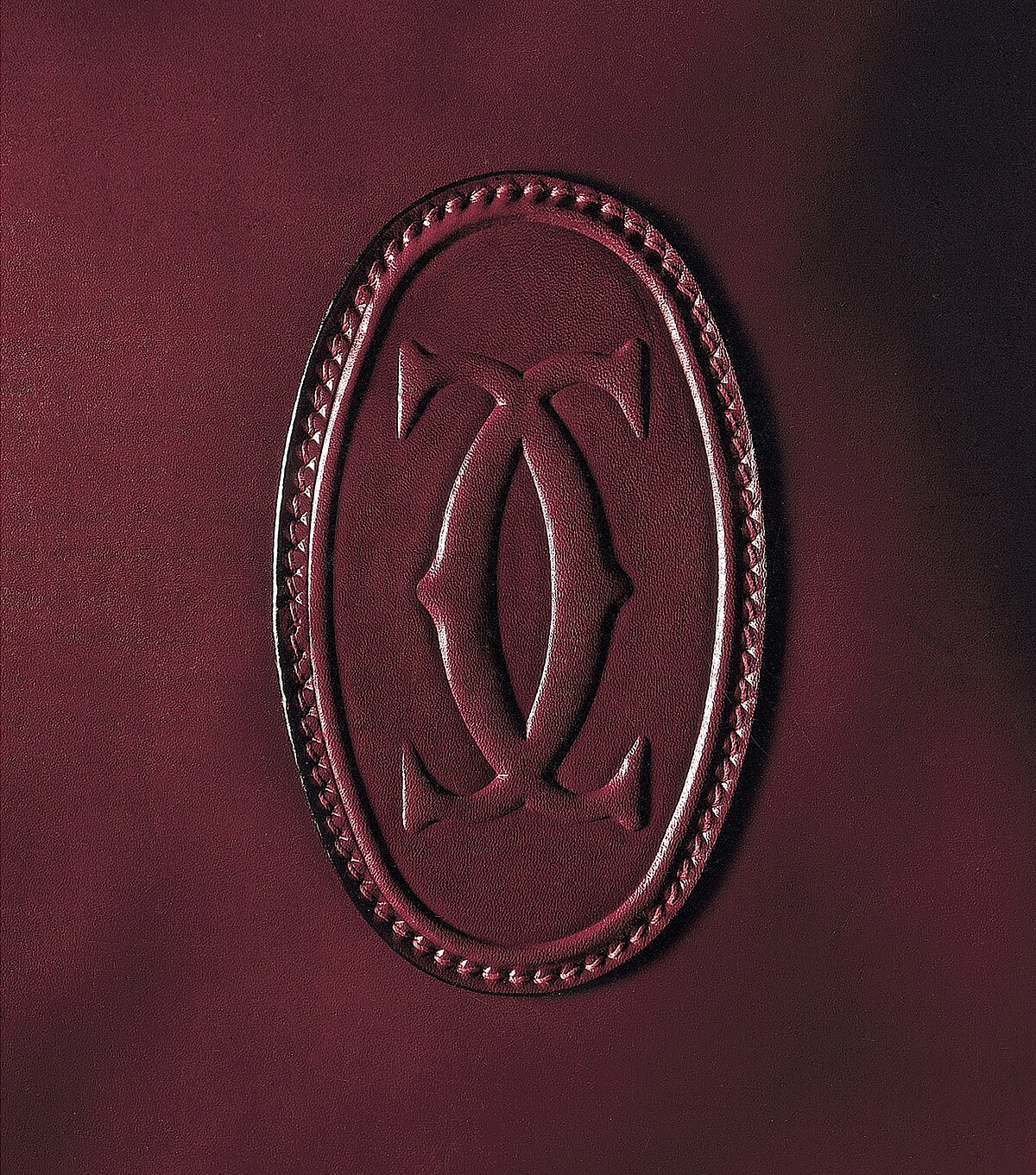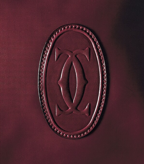 酒紅色小羊皮襯裡,Cartier標誌徽章。按扣開關系統。
