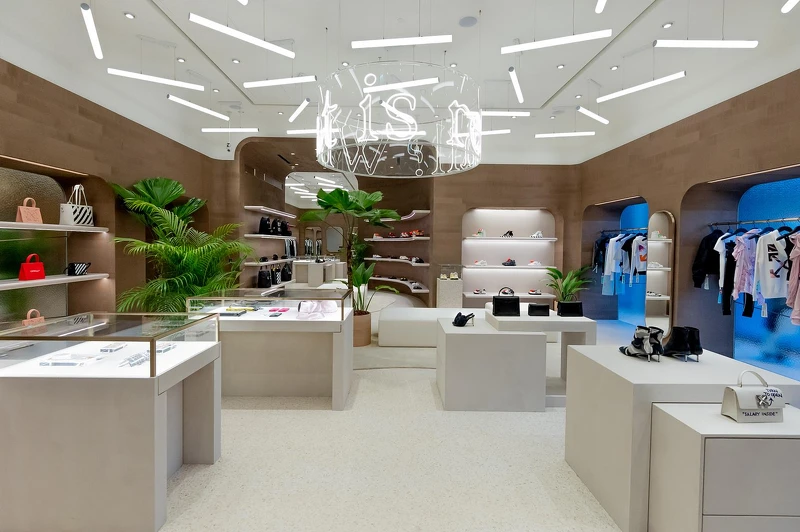 Off-White全新概念店緊扣品牌提倡的無性別主題,店內擁有61坪超大空間,走進店內明亮、溫柔的色調,點綴上低調金屬裝飾,營造出平靜、舒適的購物環境,並提供熱賣經典明星商品及最新亮相的2021春夏系列。