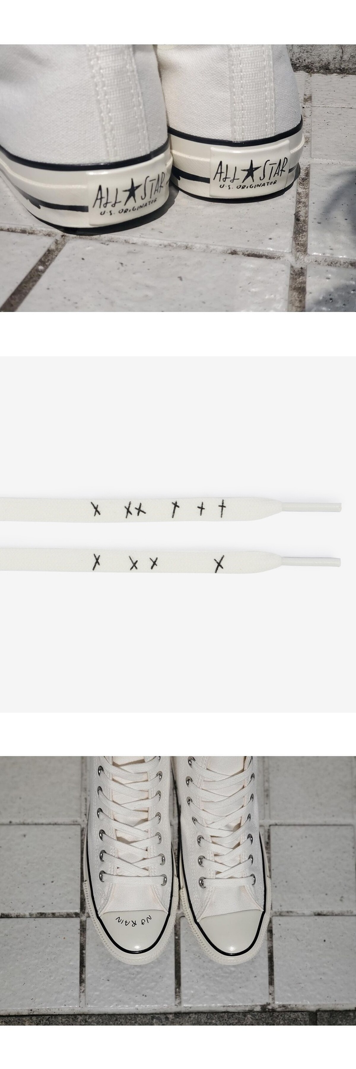 Converse X長場雄的All Star高筒帆布鞋款,一眼看過,便可以發現整雙鞋的外觀從品牌logo、鞋帶和鞋頭鞋底橡膠處都換上了長場雄的手繪線條和手寫字體,宛如一雙親手製作的客製帆布鞋。