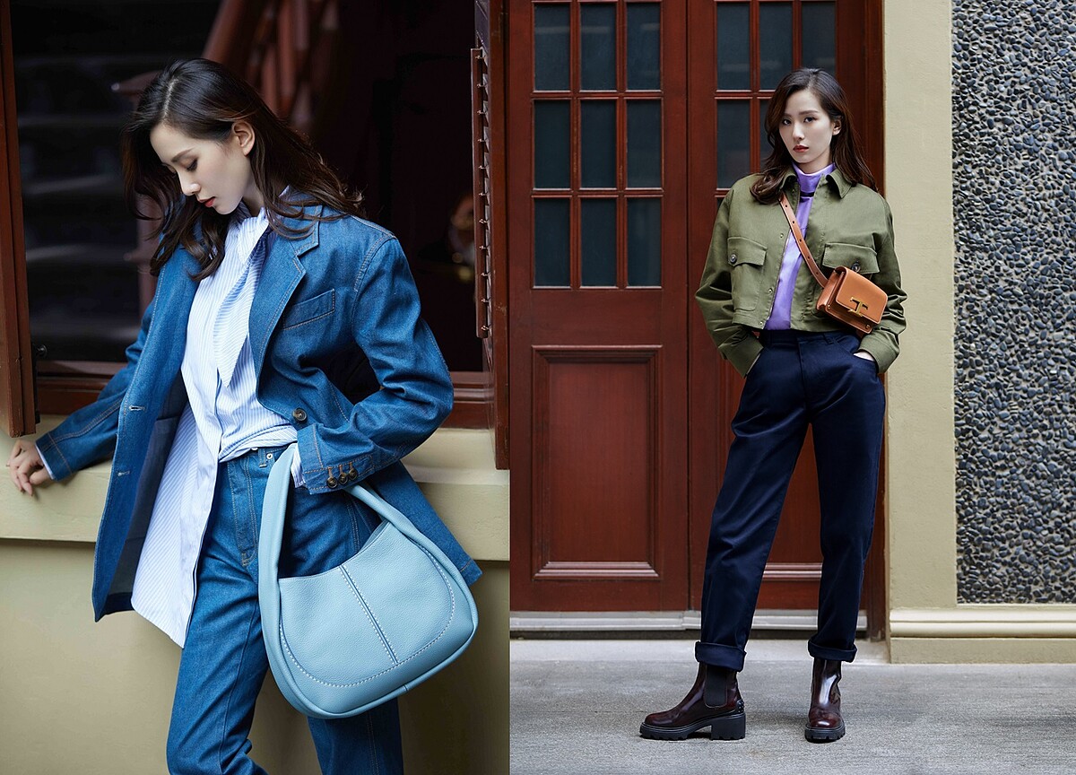 選用頂級荔枝紋牛皮的全新Shirt Bag,優雅隨興的獨特Hobo形狀,加上隱藏皮革接縫幾乎看不見金屬配飾的設計細節,舒適輕盈又柔軟的高級隨性感簡直一絕,透過劉詩詩以丹寧材質西裝x襯衫搭配上牛奶藍Shirt Bag的穿搭演繹,讓M編秒GET為何此包一推出就成為全球時尚ICON們關注焦點的原因!