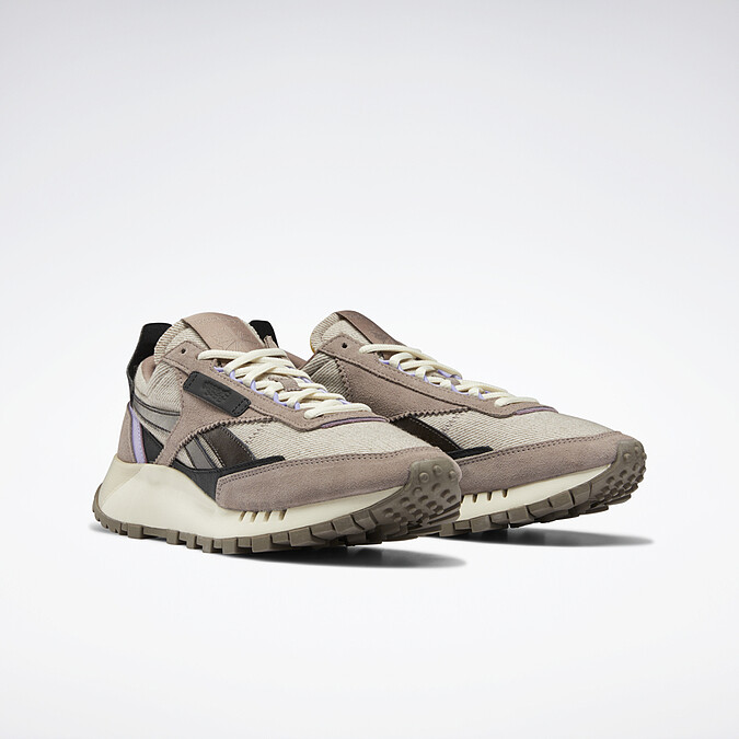 最新Reebok X A$AP Nast聯名款CL Legacy,以仿舊感的大地色系作為鞋面的主色,加上亮眼的藕紫色點綴;採用質感絨布面料製作,並延續CL Legacy異材質拼接的設計手法,配上鋸齒的厚底鞋底,復古時髦外型兼具舒適特性。