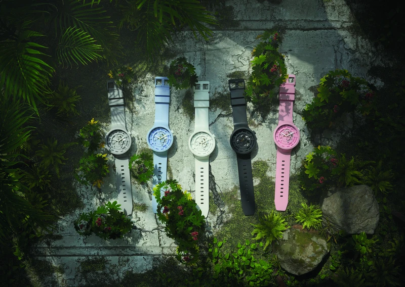呼應世界地球日的到來,Swatch NEXT全新系列聚焦永續再生的綠色製錶技術,採用領先業界的全新複合材質BIOCERAMIC生物陶瓷,將陶瓷與塑料材質結合,能大大提升耐用度,搭上品牌標誌性的縷空錶盤設計,Swatch BIG BOLD BIOCERAMIC腕錶為47mm的大錶面設計,共有迷霧灰、寶寶藍、純潔白、經典黑以及芭比粉等5種配色。