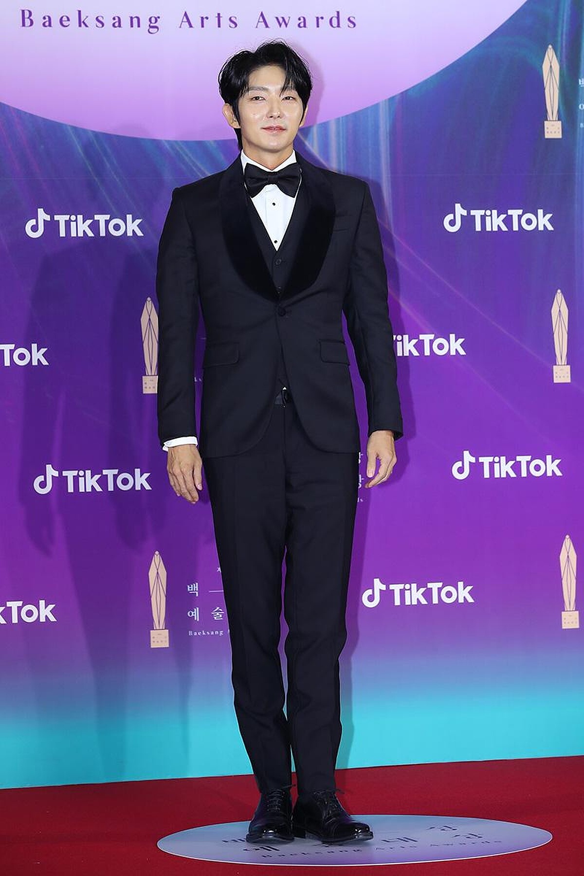 憑著韓劇《惡之花》入圍電視部門男子最優秀演技獎的李準基,穿著黑色西裝出席,特別將領帶換成深色蝴蝶領結,帥氣度十足。
