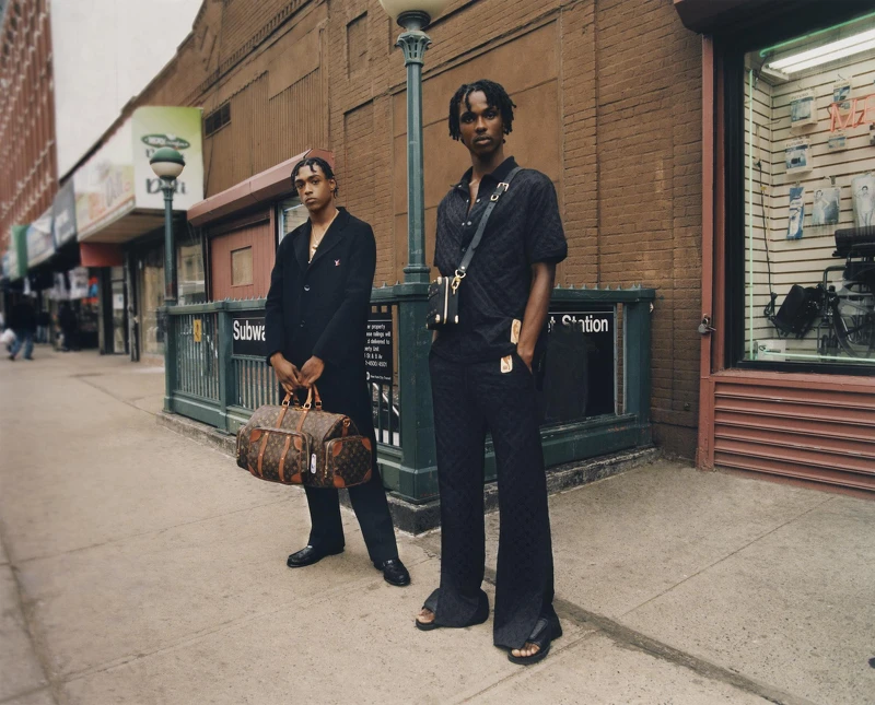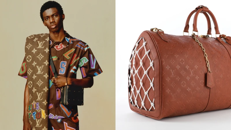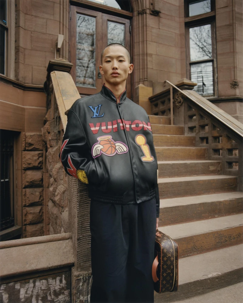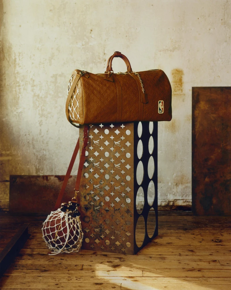 除了構思球員們的穿搭,LV也將NBA其他元素加入本次聯名的設計之中——把籃網變成包包與旅行袋上的裝飾元素;模擬出真實籃球的顆粒皮革紋路並押上LV logo印花;蒐集NBA眾多球隊的logo開頭字母,打造出新的Louis Vuitton品牌logo樣式。