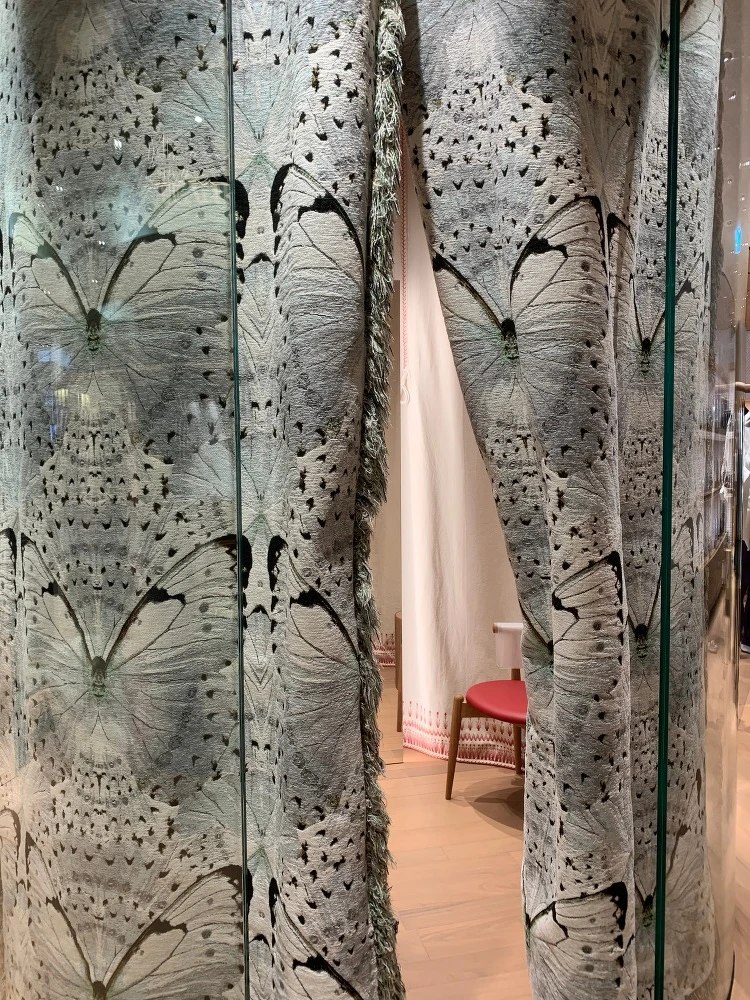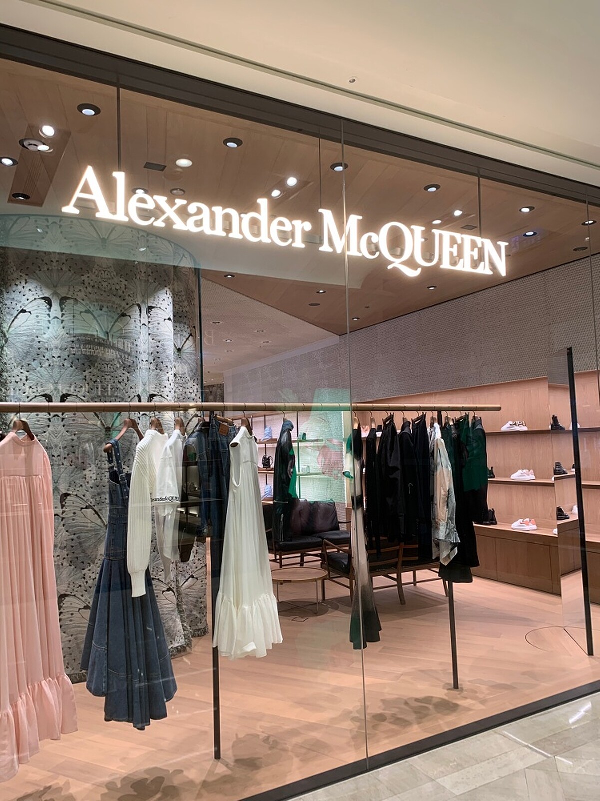 Alexander Mcqueen台灣首間專賣店選在台北信義區A9登場,提供男裝、女裝、鞋履、包包及配件系列,店舖延續品牌喜好的大自然作風,選擇大地色、粉色為主要用色,提供試衣的更衣室則以蝴蝶毛毯作為佈置,有機會路過務必前往朝聖。