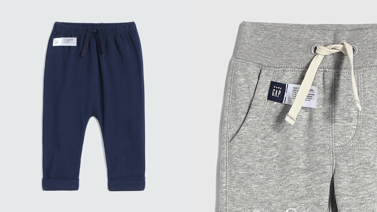 當寶寶開始會爬、會走,開始會探索對身邊事物,生活中隱藏著許多潛在的危險,例如童裝上的綁帶便是其中之一。為避免綁帶被小朋友扯掉,不小心纏繞在脖子或是放入嘴巴,Gap 最新布萊納小熊系列童裝所推出的褲裝,褲頭的繩子皆僅為裝飾用,避免前述的危險發生。