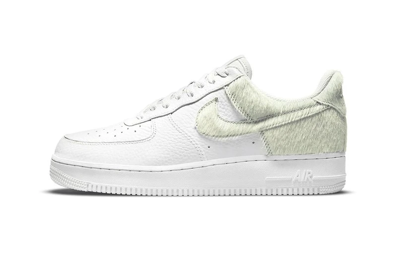 鞋如其名,Nike在鞋跟的位置鋪上了帶著淡雅的淺綠色絨毛,一路延伸至鞋子側邊的Swoosh logo。絨毛與皮革的拼接方式,為Air Force 打造了過去沒看過的層次感,也賦予這一雙經典小白鞋一個全新的獨特個性。