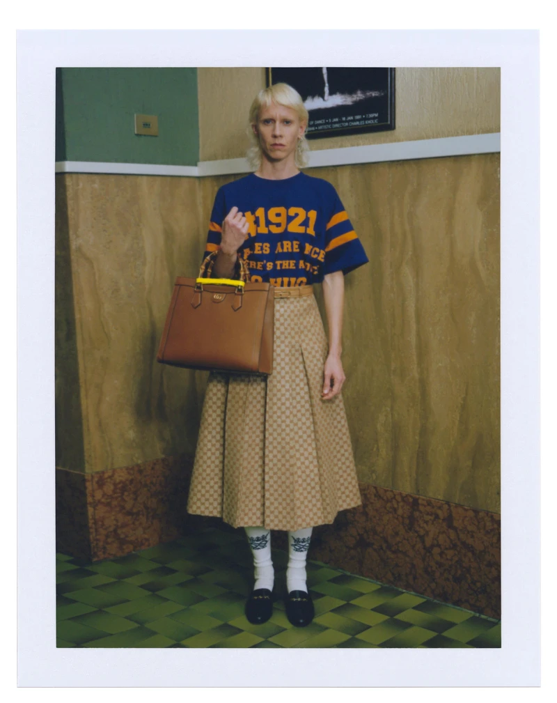 繼賈姬包之後,古馳今年再從品牌典藏庫裡挖出名人包款——Gucci Diana方形竹節包,並添加了潮流感的螢光束帶,為復古包款注入現代新意。
