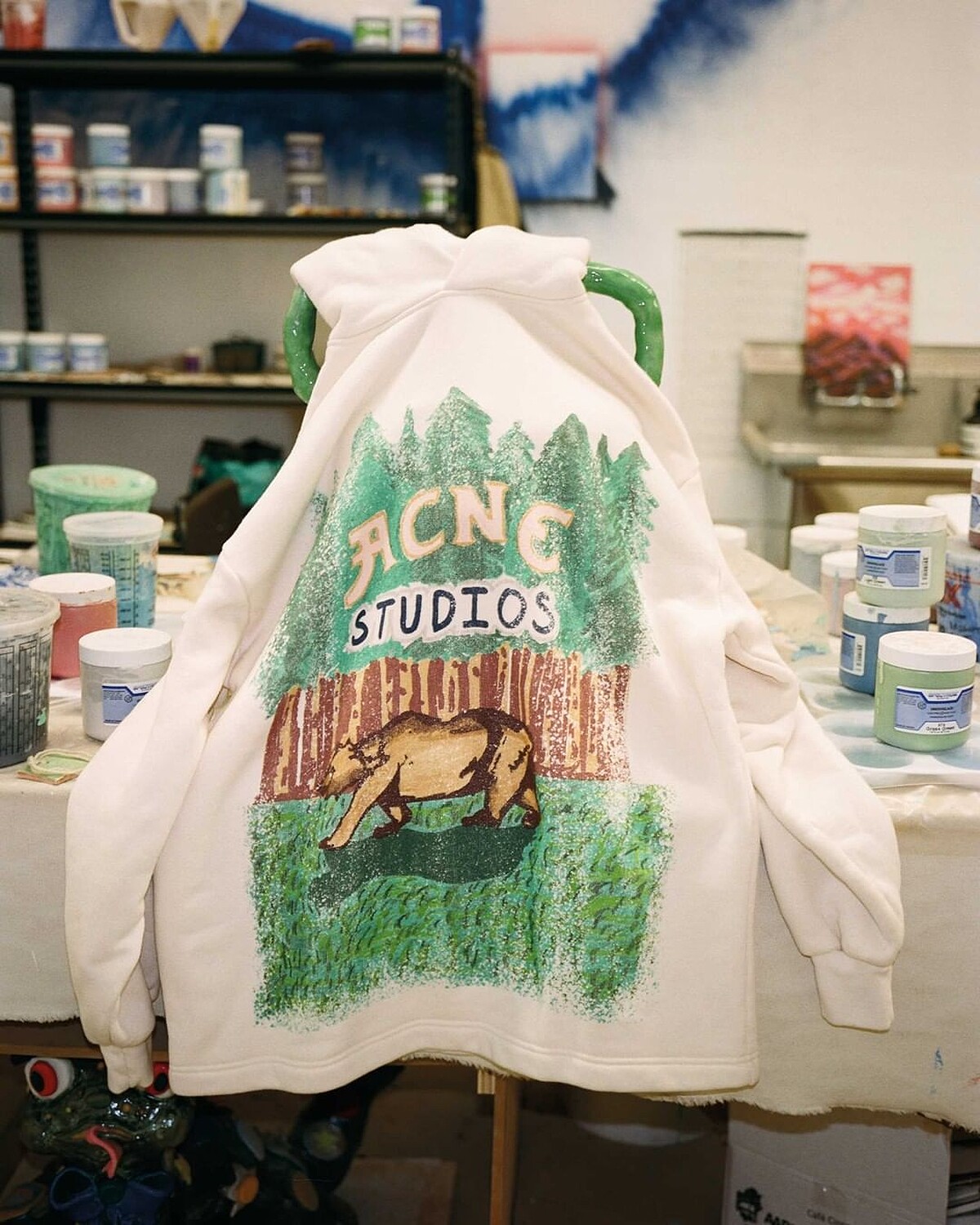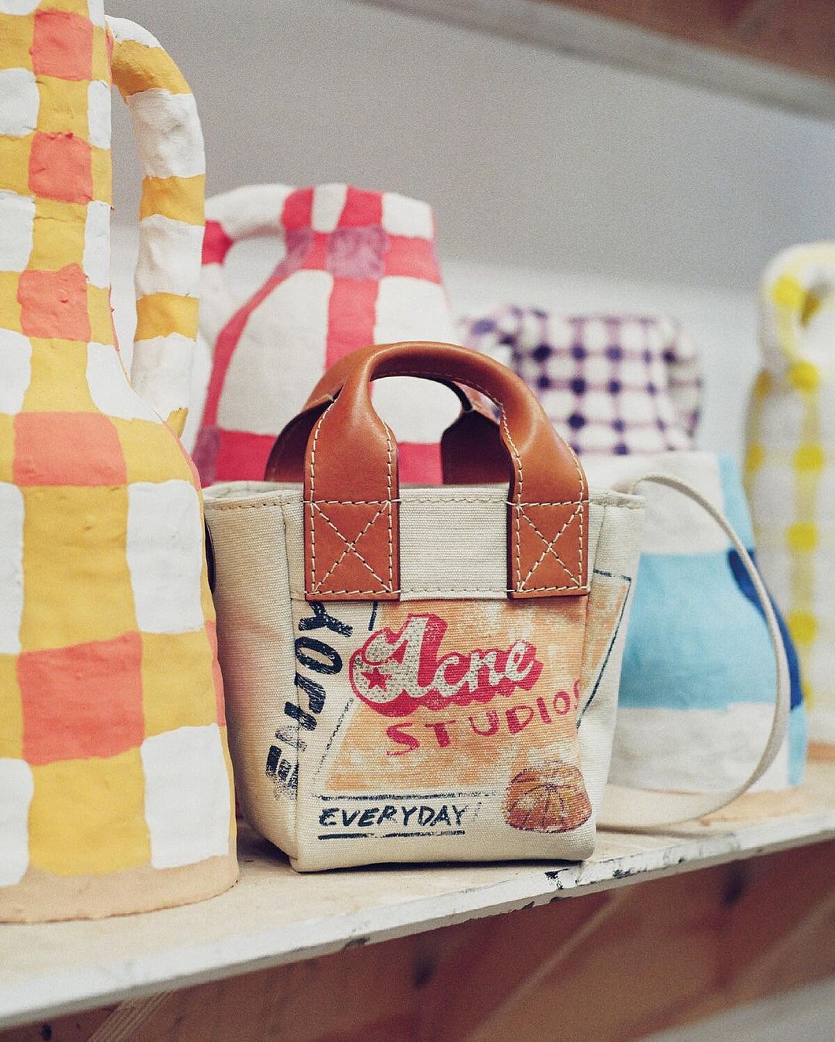 Grant Levy-Lucero透過復古+流行文化交融的陶器彩繪創作打開知名度,在本次和Acne Studios的合作,Grant Levy-Lucero從美國老式的麵粉袋包裝擷取靈感,結合天真、稚趣的手繪筆觸,並以「Enjoy Acne Studios Everyday」作為標語,打造美式復古風格塗鴉系列的服飾與配件。