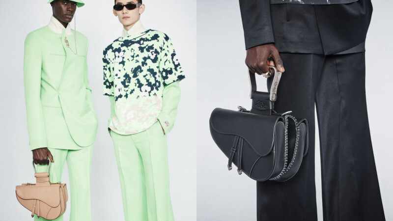 Dior馬鞍包獨有的「腎」形線條已是品牌標誌性的經典設計之一,一個Saddle不夠裝,Kim Jones為大家獻上雙層馬鞍袋的設計。為了呼應馬鞍元素,雙層Dior Saddle馬鞍包之間以馬鐙提把將包包串接在一起(馬鐙,騎馬時放置腳的環形金屬),提把上刻有沙漠主題的圖樣,讓馬鞍包換以一種硬派、帥氣的個性風格。