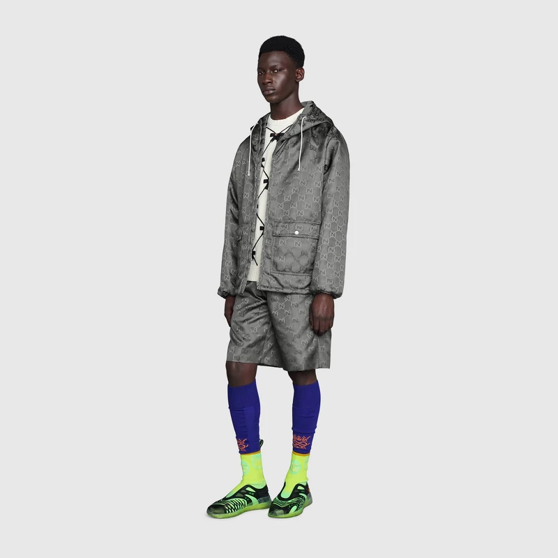 當想不到要穿什麼的時候,來一套不用思考的One tone穿搭就對了!Gucci岩石灰的拉鍊外套與短褲,以運動休閒的寬鬆輪廓呈現,兩件一起,裡面再簡單配件白T就很時髦。另一方面,岩石灰色也可以說是一個不易出錯的穿搭色,相信可以輕鬆融入大家衣櫃裡的其他單品。