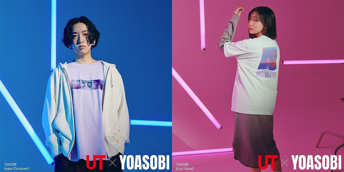 曲風輕快、質樸的歌詞文字,Yoasobi才出道兩年的時間,已經創作出許多高點閱的單曲,包含成名作《夜に駆ける》、《たぶん》、《群青》等,Uniqlo便以Yoasobi的動畫MV中的畫面作成UT系列服飾。