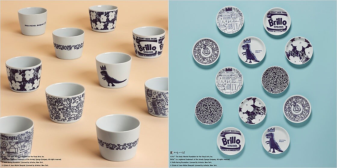 集結美國50~80年代3位極具代表性的藝術家——安迪沃荷(Andy Warhol)、凱斯哈林(Keith Haring)以及尚米榭巴斯奇亞(Jean-Michel Basquiat),把他們生前最為人知的畫作印製為服飾、懶人鞋和購物包,與其他系列不一樣的是,本次藝術家聯名系列還特別推出盤子與杯子2款瓷器。