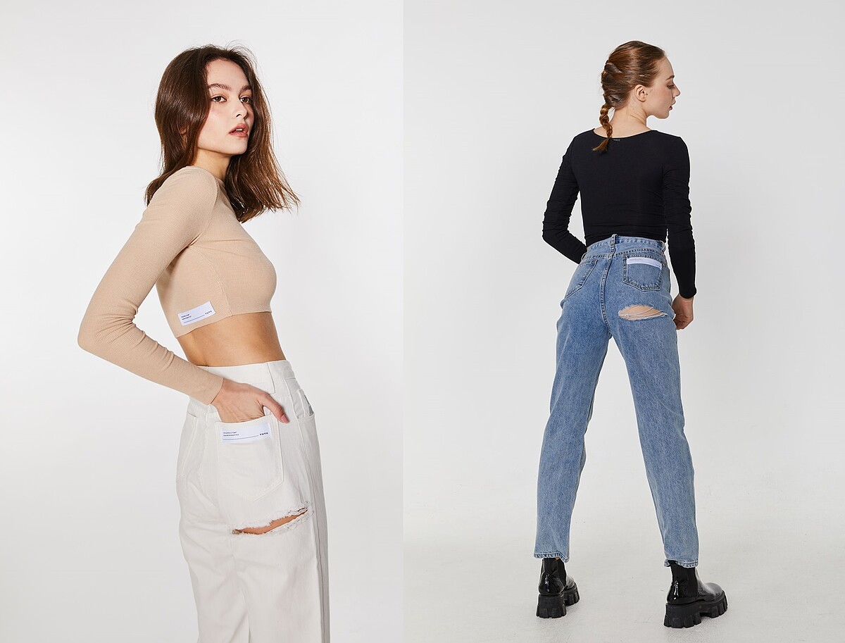 YUYU破女友褲真的很猛!最強大的設計亮點就是那「露出屁股最完美的微笑線」設計,破得恰到好處的隱約性感小心機,完全彰顯出穿了就是辣度與帥度都破錶的強大存在感,不管是擁有姣好身材女生透過微露性感來散發魅力,或是害羞時髦女生想透過內搭圖騰或碰撞色調的緊身褲,來展現混搭品味,其實都很出色很OK,對M編來說這就是一款想性感就性感,想著重設計亮點彰顯個人搭配實力也沒問題的存在感100分牛仔褲!
