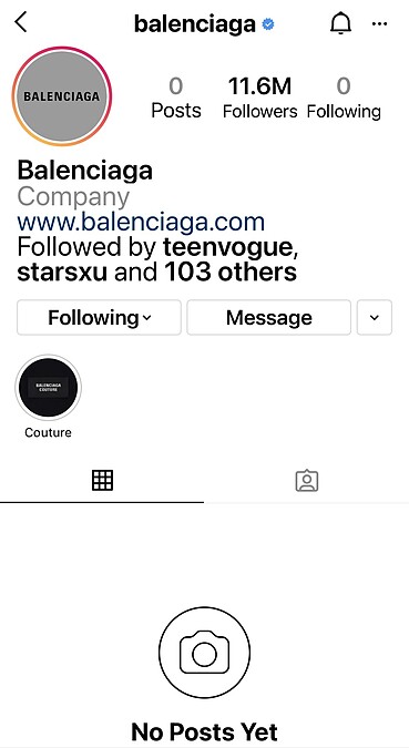 然而,在資訊過量的年代,也有品牌選擇退出社群世界,繼年初Bottega Veneta低調淡出Twitter、Instagram、Facebook各大平台,Balenciaga官方Instagram上帳號上的照片也全部都不見了!