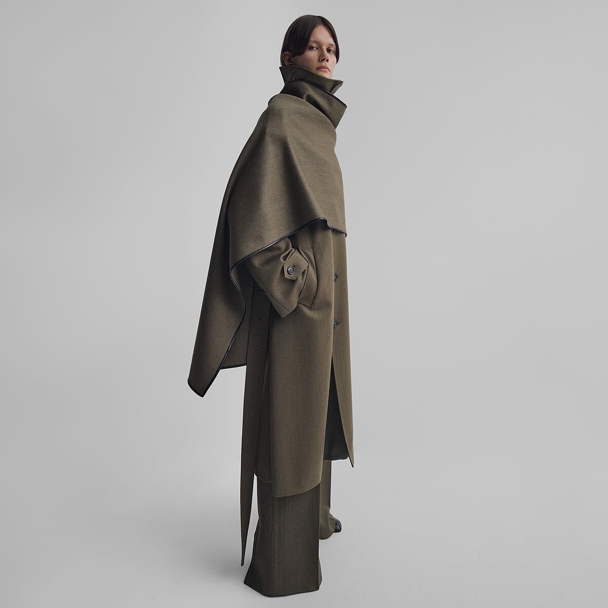 Phoebe Philo個人品牌遵循著永續與永恆的理念,儘管大部分的單品定價高昂,但它們都是經典不敗的款式,能長長久久使用,且在任何時刻拿出來都不失特色,像是A1系列中的這件卡其風衣,除了有極簡俐落的輪廓,在肩膀處加裝了巨大的扣子,並能用於裝卸同組的披肩圍巾,讓穿著者能隨時自由變化。