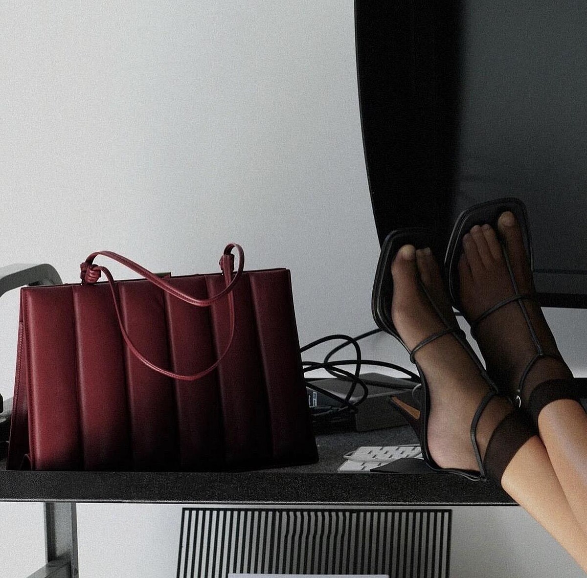A1系列第二波上架,新手袋隨之登場,簡約方正的公事包型加入直條絎縫,細皮革手提把佐以纏繞扭結,反映細緻質感,其中暗紅色款式編輯特別推薦。