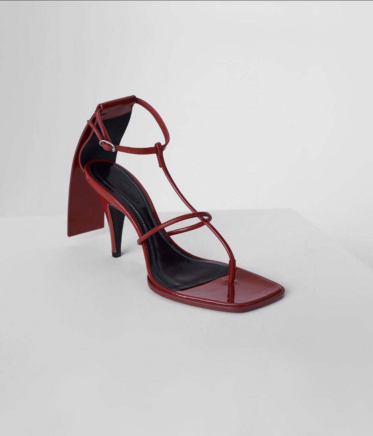 Phoebe Philo最新推出的高跟鞋很不一般,正面看似優雅的繫帶夾腳跟鞋,鞋跟後方增設了一塊矩形皮革片。