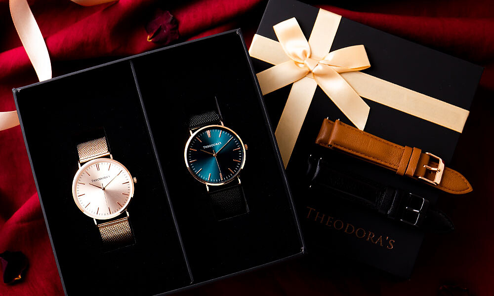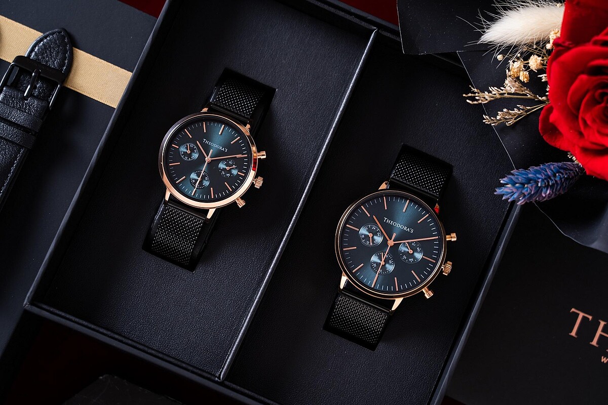 來自台灣的腕錶品牌Theodora's希奧朵拉,以經典Hera系列和真三眼Apollo系列組合成七夕情人節限定對錶、對飾禮盒。經典Hera系列主打大錶面及簡約錶盤設計,七夕限定禮盒推出玫瑰金與翡翠綠搭配的對錶組合;以希臘神話中光明之神Apollo命名的真三眼Apollo系列,則有大錶面41mm及小錶面37mm兩種尺寸手錶提供挑選。