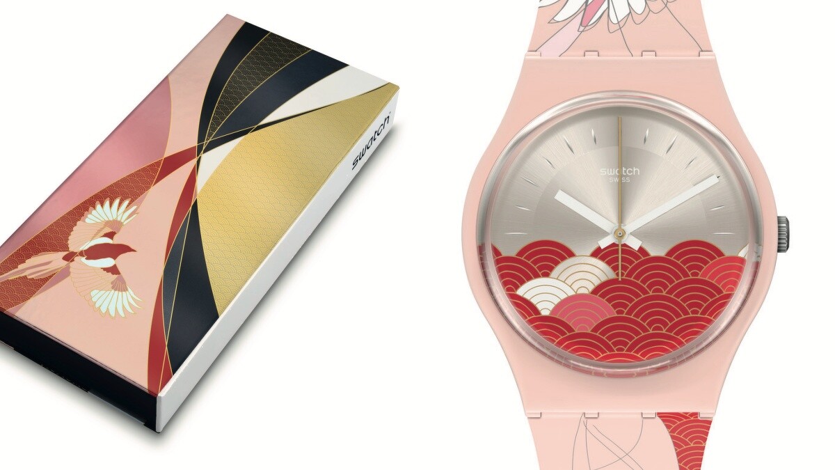 男錶「雲海」為41mm大尺寸錶盤,結合環繞祥雲的層層山巒作為設計,搭配經典色系黑色與金色,展露出低調內斂的格調;女錶「紅鳶」則是34mm尺寸錶盤,將象徵銀河的銀色與好運的紅色設計成錶盤,就像是女孩們內心的柔美情感。Swatch七夕情人節特別版套錶「相思雲鳶」限定於Swatch官網獨家販售。