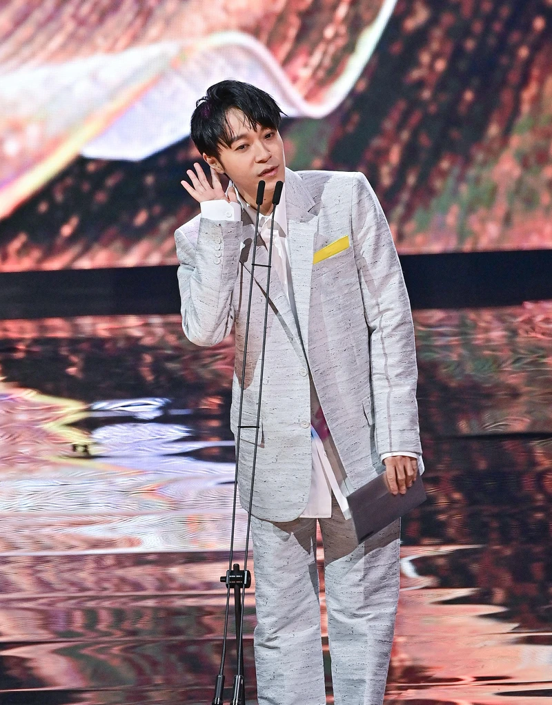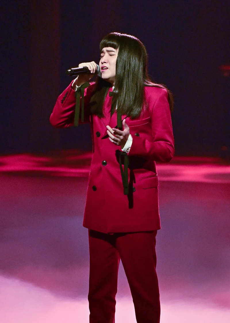 同樣受邀擔任表演嘉賓的持修,脫下原先於紅毯上的拼接格紋造型,以簡約俐落的酒紅西裝,搭配他的招牌長髮,散發著帥氣又紳士的時尚感。