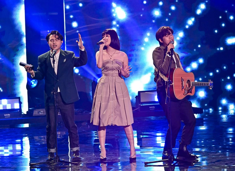 入圍4項大獎的告五人,表演時,三人皆以大地色系為搭配理念,其中女主唱犬青更身穿平口連身洋裝,工業風的設計,著實讓人眼睛為之一亮