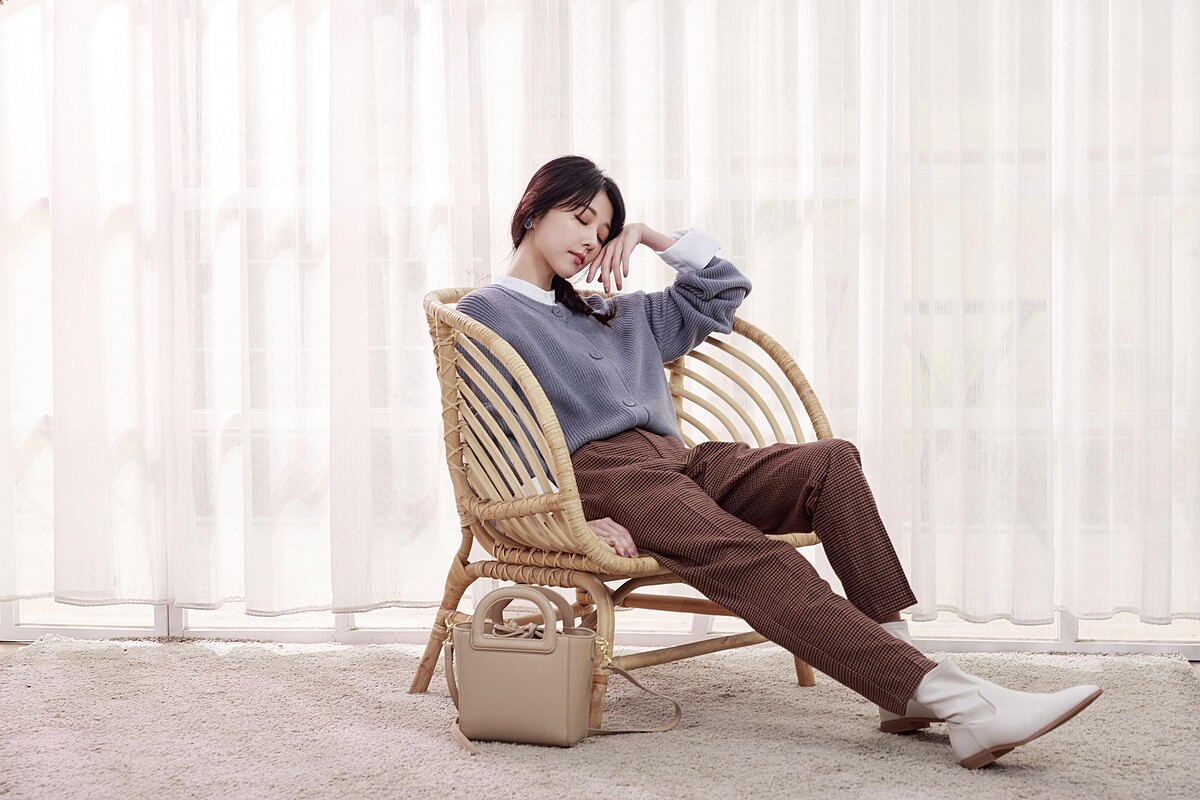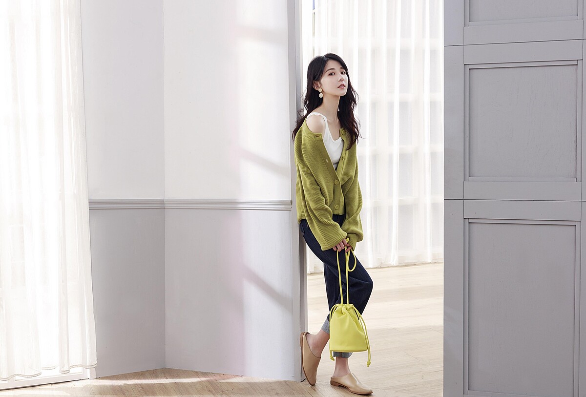 好感針織外套搭配丹寧褲款其實都是透過優秀的基礎經典單品來表現,單品顏色的選擇就更是品味的關鍵,雨薇自己透過一眼就能感受到秋意的盎然綠針織外套來呈現出秋初氣息,再花點小心機帶上同色調小巧水筒包,讓全身造型色調有著諧和的呼應默契,再踩上一雙杏色柔軟皮革穆勒鞋,帶點隨興慵懶與自由愜意的穿搭造型,是雨薇自己日常休閒最愛的裝扮選項。