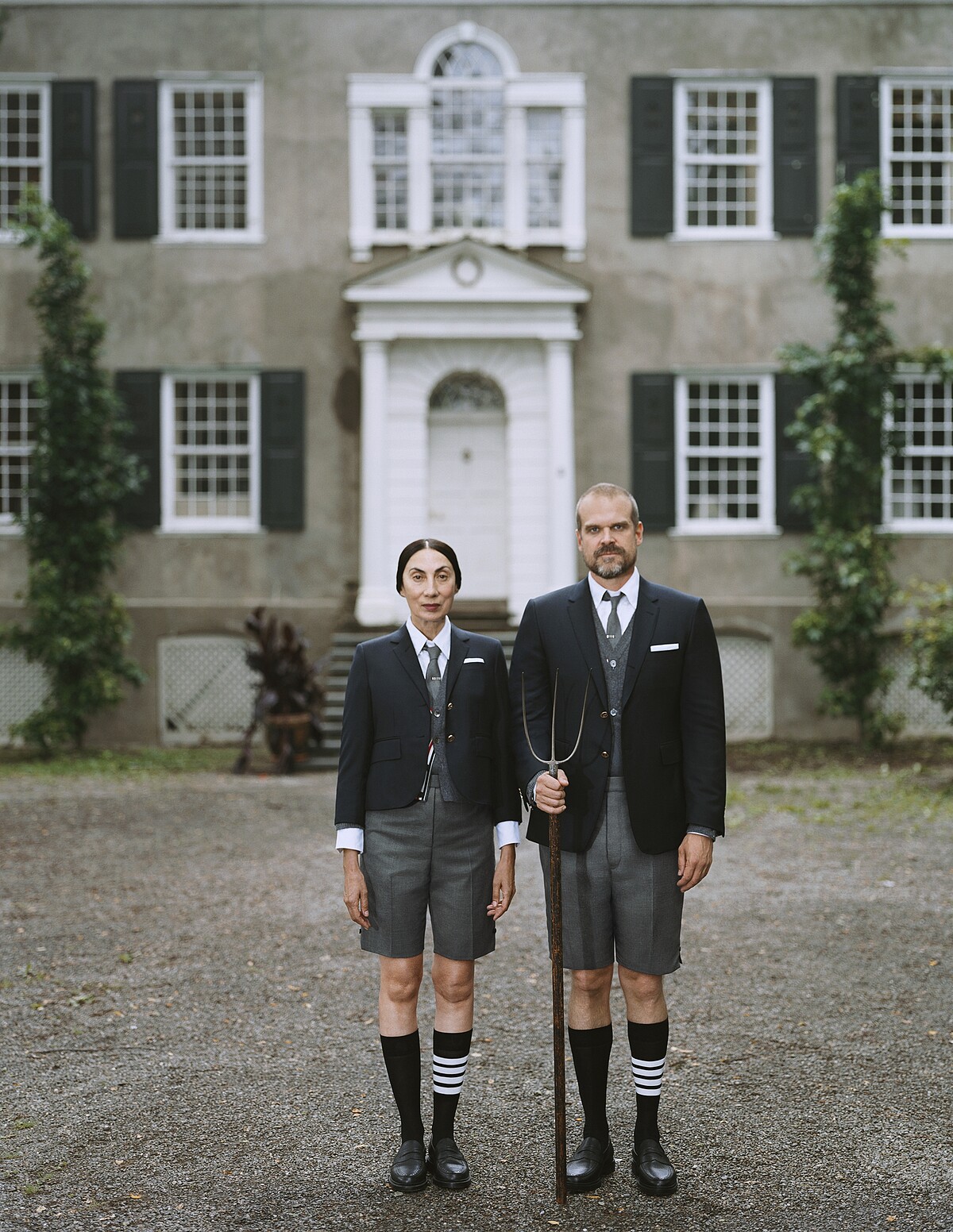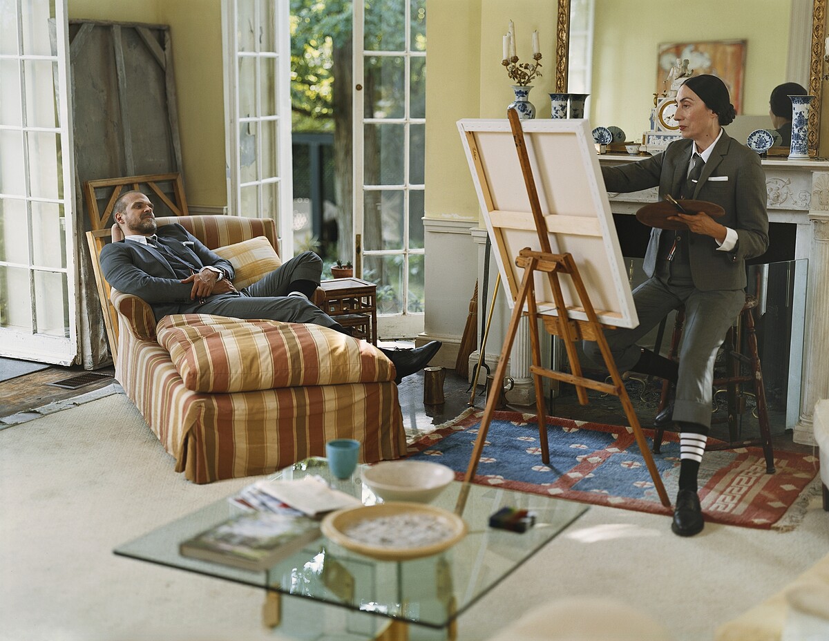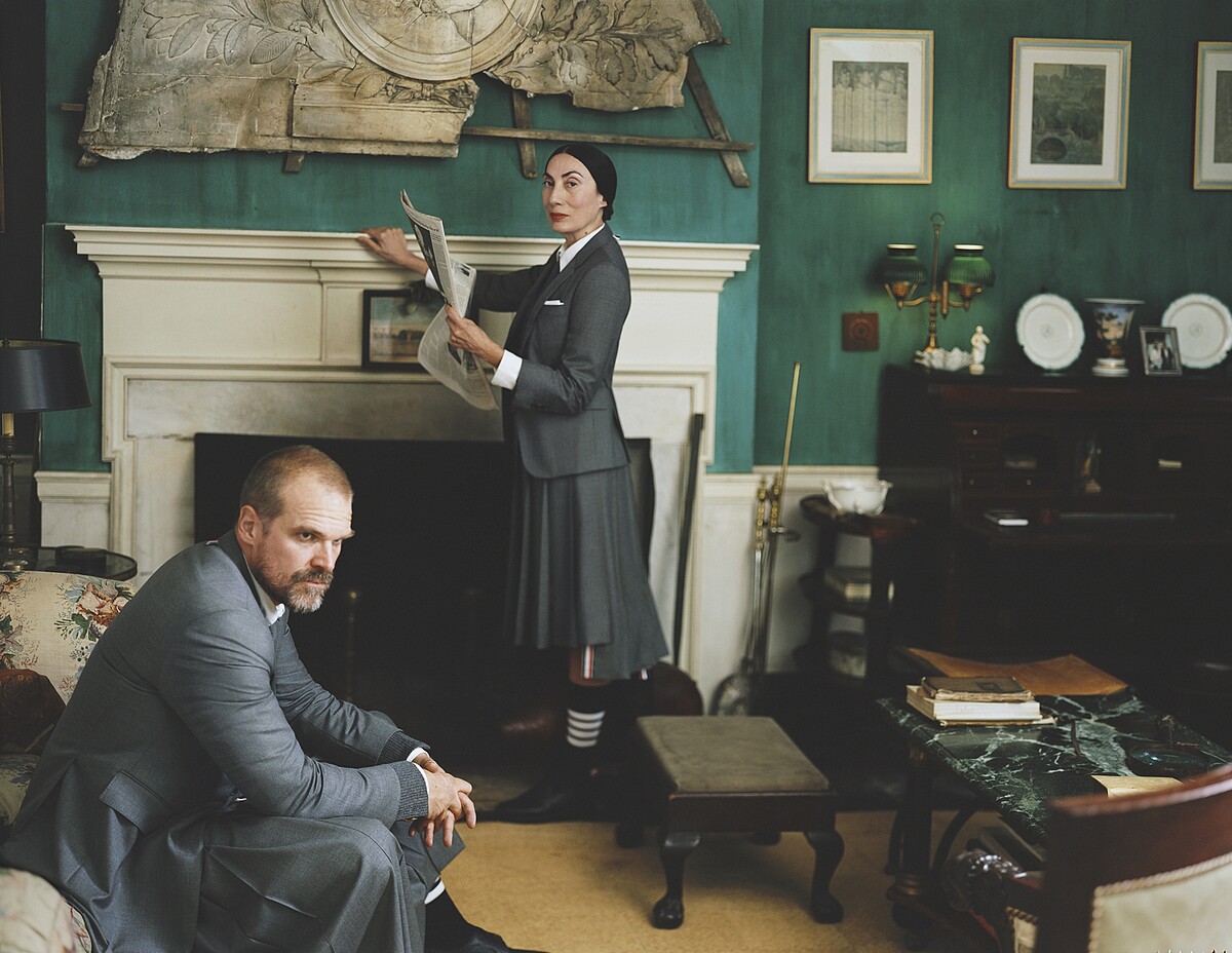 曾出演電影《黑寡婦》(Black Widow)與人氣影集《怪奇物語》(Stranger Things)的知名美國男演員David Harbour在位於紐約北部的知名宅邸 Teviotdale 中演繹THOM BROWNE 經典系列,此系列影像由美國攝影師Tina Barney掌鏡拍攝。今次品牌將美國繪畫的風格元素融入拍攝,以獨具新意的手法詮釋 THOM BROWNE 經典的制服式設計。