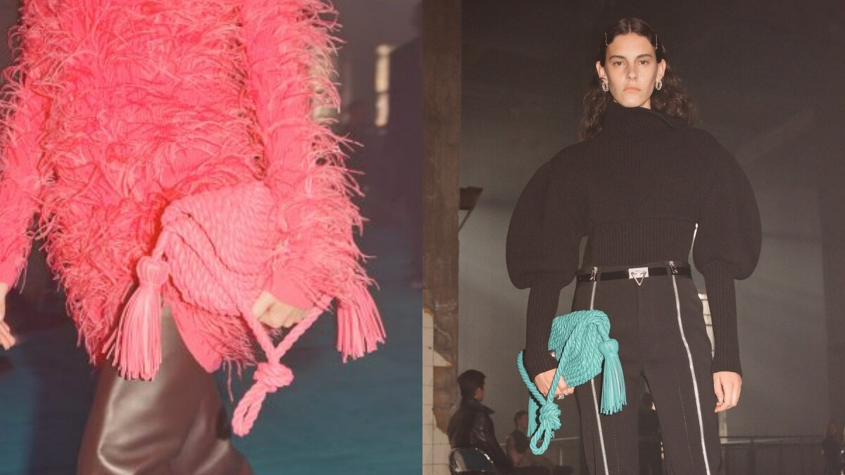 本身就帶有編織工藝的繩索,也變成Daniel Lee本次創作的題材之一,運用繩索本身的編織紋理,以纏繞的方式框出包包的形狀,再配上一個復古感的流蘇掛飾,彰顯出品牌的編織工藝強項。