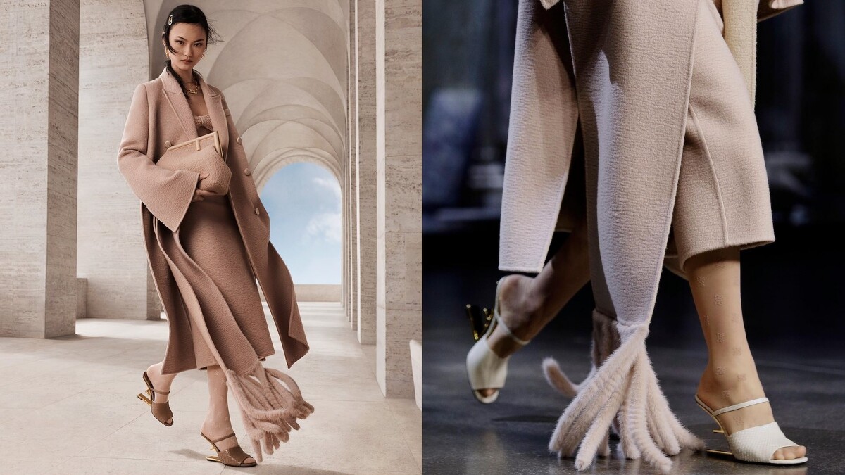 在2021秋冬大秀上首次亮相的First高跟鞋,在帶有復古設計感的露趾涼鞋輪廓下,在鞋跟的地方用英文字母F打造亮點,讓跟鞋不只有時尚、華麗,還另帶有一種建築美學的設計氣氛圍。