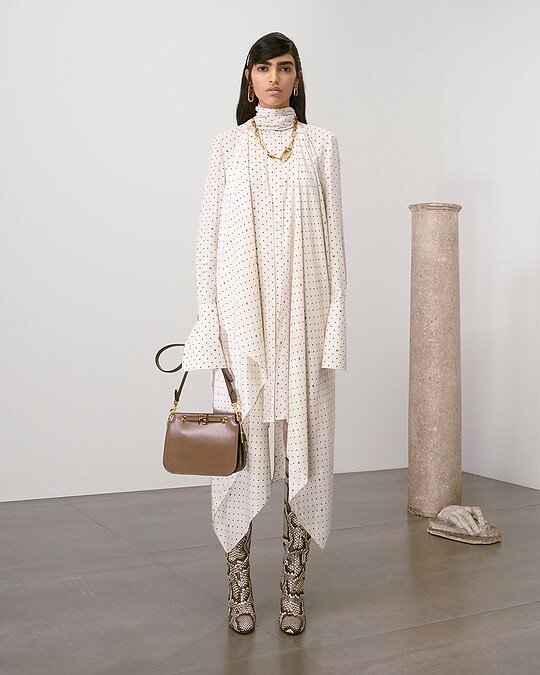 最後想要推薦的單品,是這一款風琴造型的Touch包包。從Fendi的資料庫中不難發現,品牌非常鍾於有如建築般對稱的包包設計,Kim Jones遵循Fendi的設計傳統,並在包包添上樑柱型的小圓筒裝飾。而會取名為Touch,原因在藏在包包正面所看到的金色FF釦飾,將兩個F碰在一起便可以打開包口,透過有趣的小機關來呼應包包的命名!