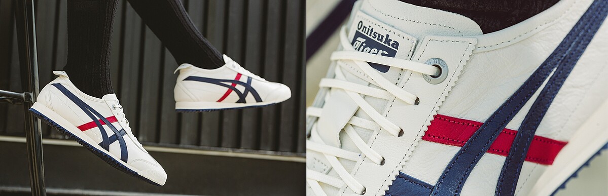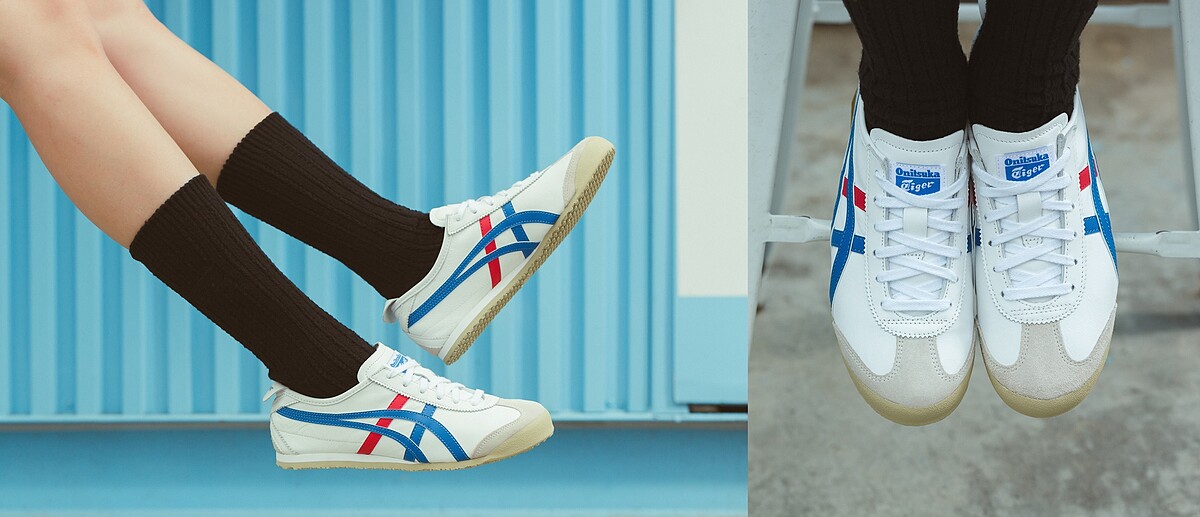MEXICO 66原始鞋款的設計靈感源自訓練鞋的元素,同時融入60年代的風格,鮮明搶眼的藍紅虎爪紋印襯在白底鞋身,簡單又吸睛,讓MEXICO 66有著纖秀的獨特造型。