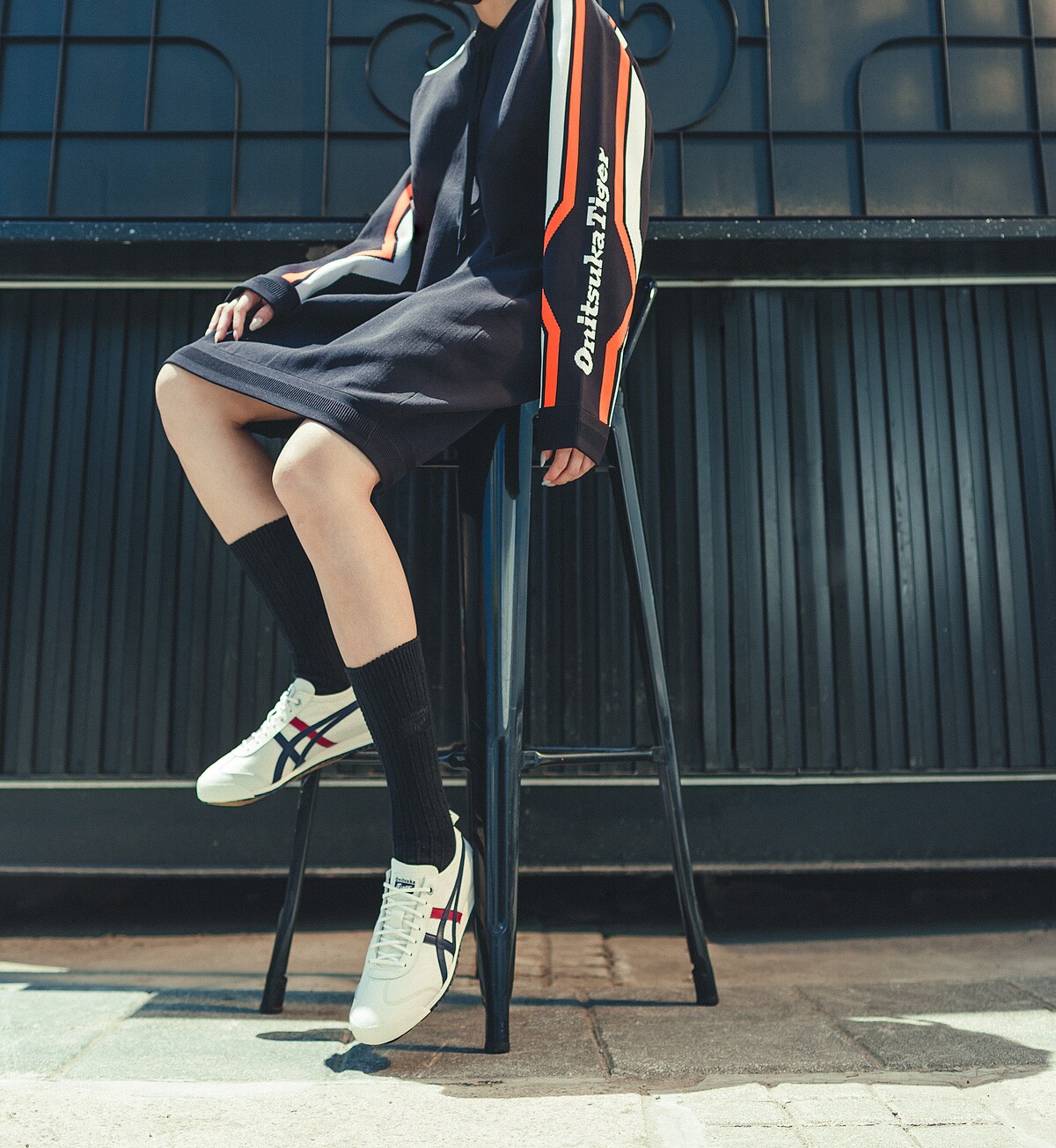MEXICO 66 SD的搭配性多元,個性女孩在秋冬可以挑戰穿上Oversize運動風單品,加上中筒襪-上半身寬鬆 vs 纖細的腳部線條-就是一雙必須PICK的百搭小白鞋。