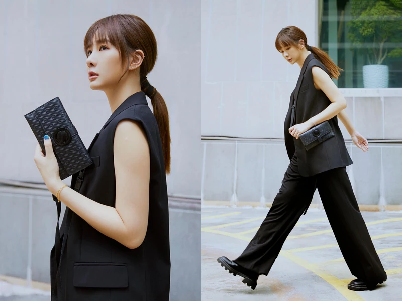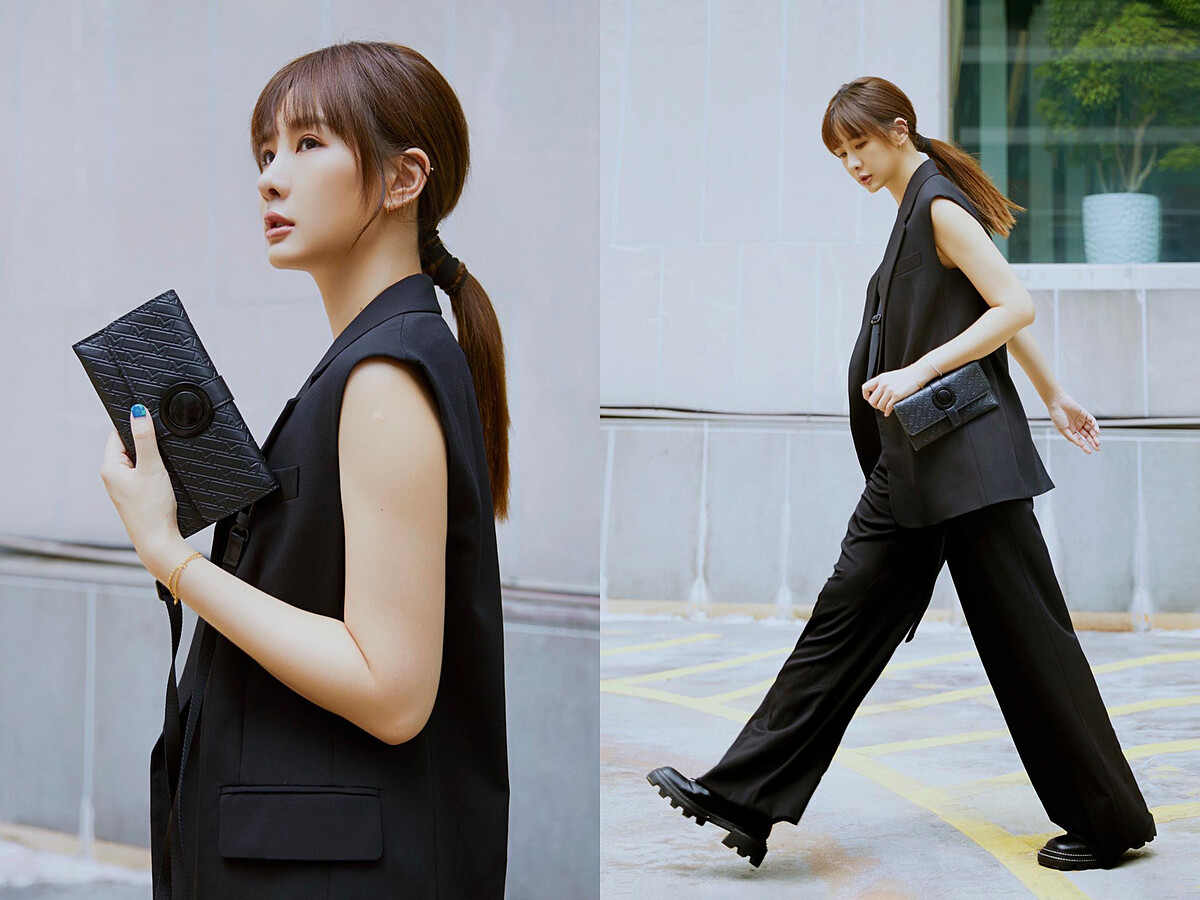 一身黑色帥氣中性褲裝的安心亞,選擇可手拿可肩背的萬寶龍UltraBlack迷你文件夾,完美演繹出都會女性獨有的時髦自信氣場!