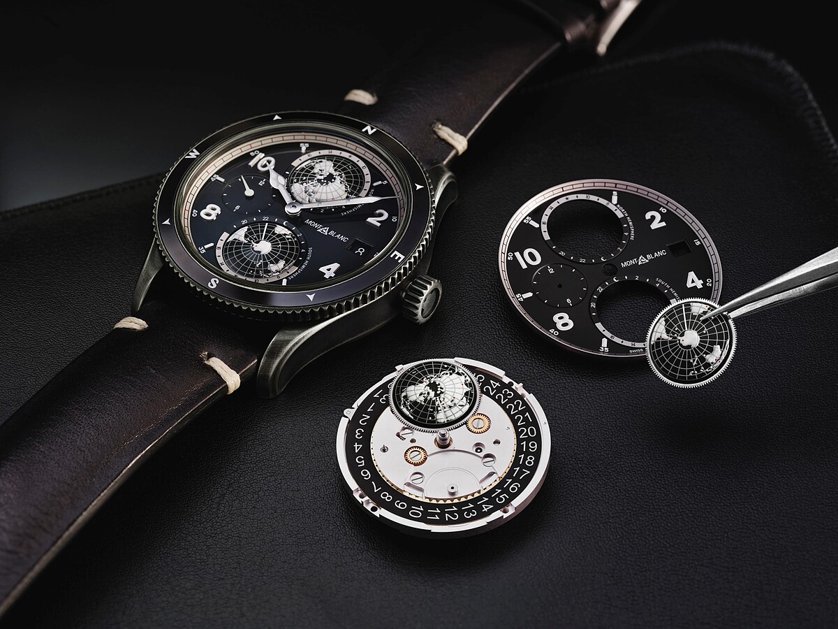 另外,作為紀攀登世界七大峰的挑戰,兩個地球儀以紅色圓點標示七大峰和白朗峰的位置。錶背中央鐫刻白朗峰圖案、兩把交叉的冰鎬和一個羅盤,再由世界七大峰圍繞著這些圖案,透過美學細節激發登峰冒險精神,以及激勵品牌創始人的那座標誌性山峰。