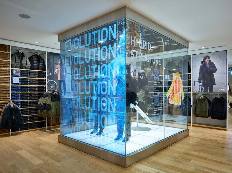 與其說是一間服飾店,Uniqlo更像是一個布料科學家,因應著氣候和人們生活習慣的改變,不斷開發出新穎的面料技術。品牌許多的系列服飾和特殊布料,在Uniqlo Ginza旗艦店皆以展覽品一般的陳列,裝飾在各樓層的角落。