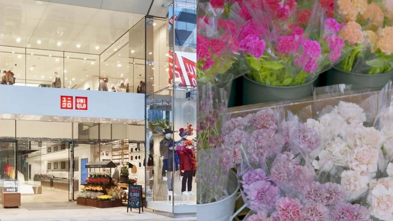 在還未踏進店內,便可以看到Uniqlo Ginza門口擺放著許多的花束,承襲品牌平價的特性,Uniqlo的花束每束只要390日幣。