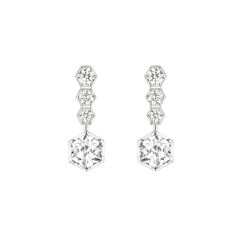 18K白金耳環,鑲嵌2顆重0.5克拉的Taille Impératrice皇后式切割鑽石和6顆明亮式切割鑽石。建議售價約TWD498,000