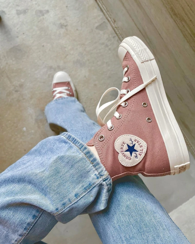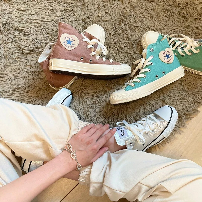 Converse經典圓形鞋標換成愛心圖案,推出米白、奶茶色、湖水綠還有夢幻粉色系